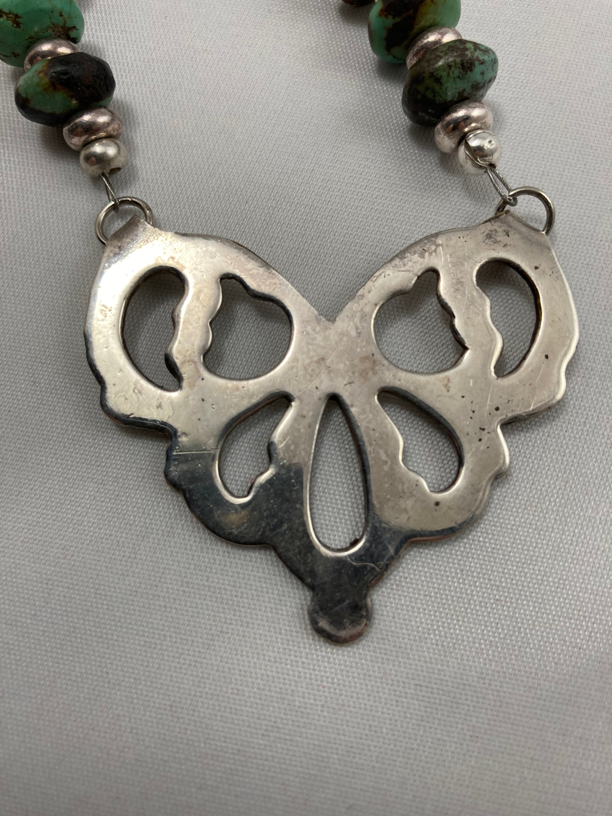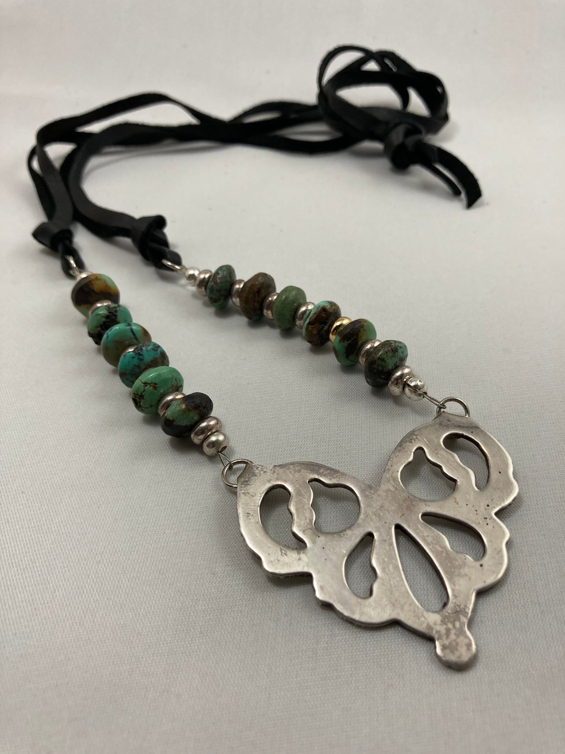 Silver, Turquoise, & Leather Necklace from a Serving Bowl Handle